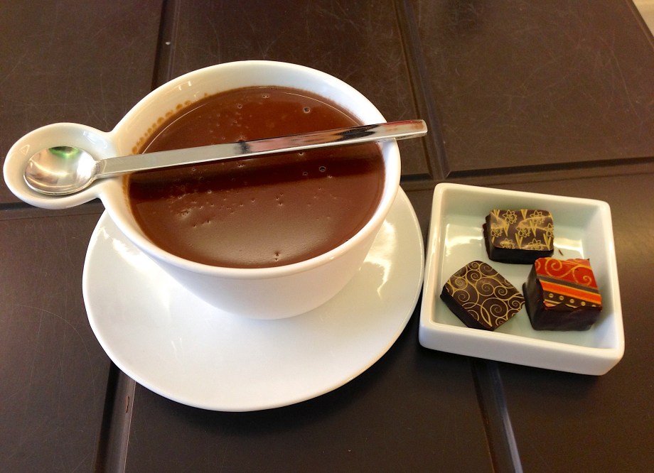 Artisan du Chocolate Written by John Godley A very thick and very rich hot chocolate from Artisan du Chocolate on Westbourne Grove. The table looks like a giant bar of chocolate, complete with a small bite taken out of a corner. Heavenly. I felt a bit sickly afterwards though. Like Loading... Related Leave a comment Cancel reply Δ