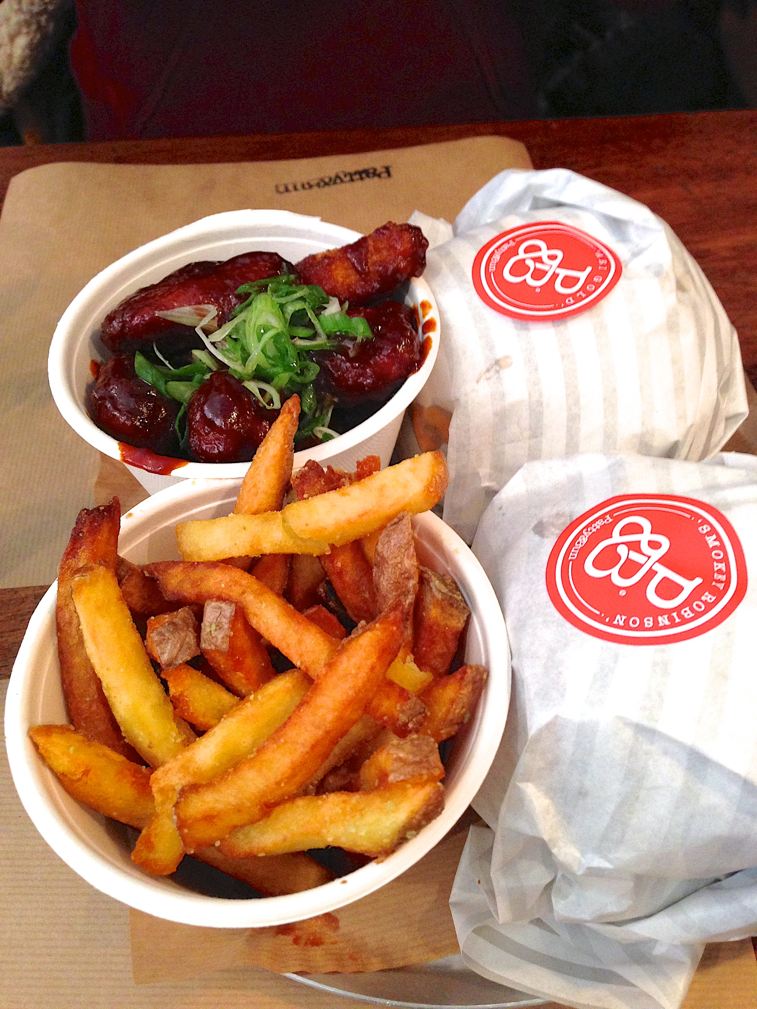Patty & Bun Written by John Godley I’m not generally a big burger fan, but this hipster place has very tasty burgers and very friendly staff. Get there early unless you want to queue. My photo of the actual burger looked liked it had exploded so they’re shown neatly wrapped. Like Loading... Related 5 thoughts on “Patty & Bun” I bet the burger was good.. LikeLike Reply I’d certainly have another! LikeLike Reply kool….. LikeLike Oooh those chips look good LikeLike Reply They were nice yeah, if a little salty. LikeLike Reply Leave a comment Cancel reply Δ